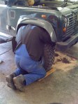 Im Gelände oder Offroad (engl. abseits der Straße, Gelände) fährt man langsam. Wichtig ist, dass das Auto die natürlichen Unebenheiten überwindet, ohne Schaden zu nehmen oder irgendwo hängen zu bleiben. Dazu haben wir nicht nur wichtige Teile des Landys geschützt (z.B. Spurstange, Differential) und die Hängerkupplung am Rahmen statt mit der Vorrichtung montiert, sondern auch das Fahrwerk ausgewechselt. Dadurch ist unser Grüner ca. 5 cm höher geworden. Auch die Trittbretter haben wir entfernt und durch Treeslider ersetzt. Das alles zusammen gibt uns mehr Bodenfreiheit.