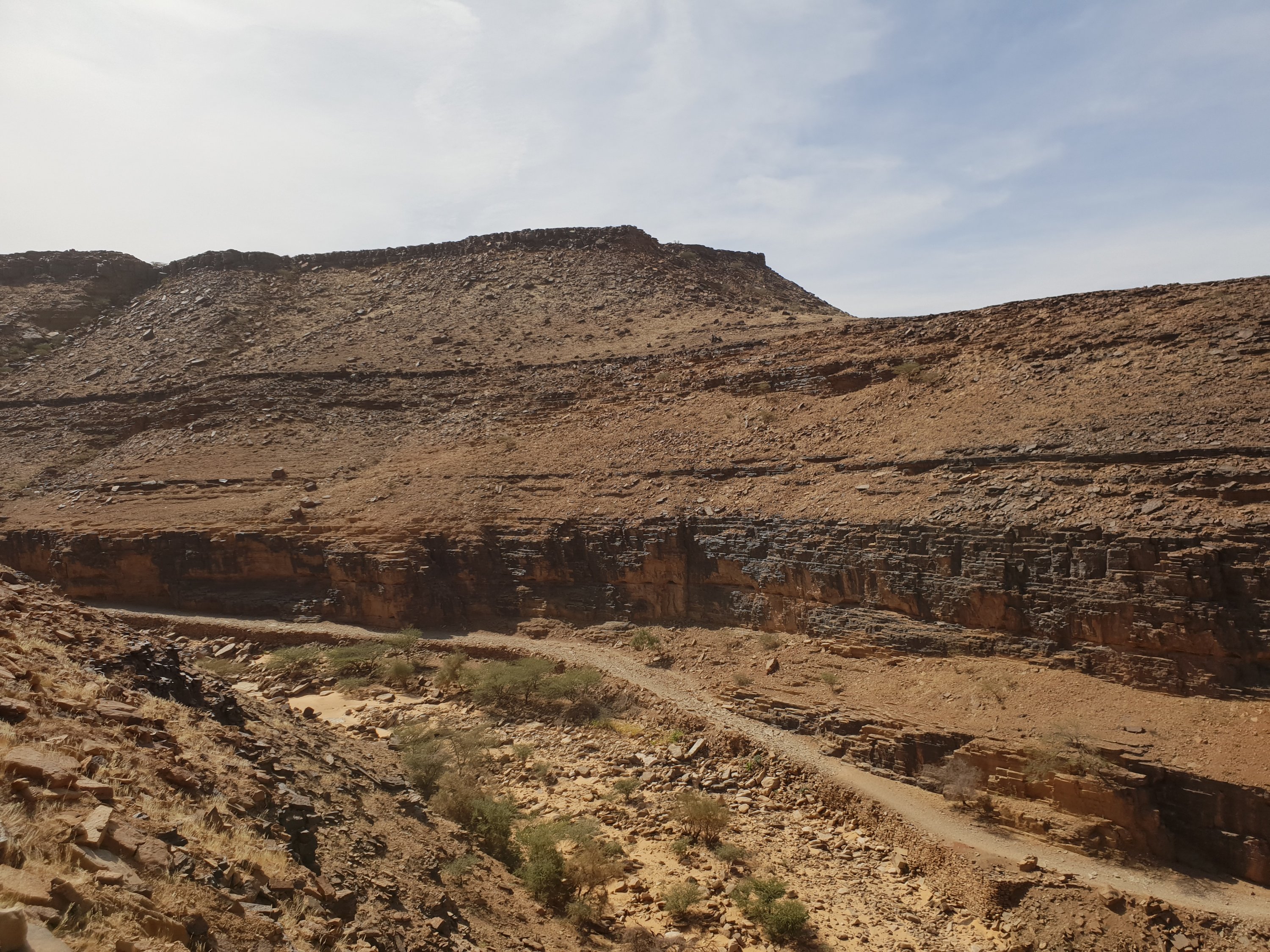 Ein Grossteil Mauretaniens ist Wüste. Steinwüste, weisse Sandwüste, gelbe Sandwüste, rote Sandwüste, Geröllwüste …. ein wüstes Land. Und wie geschaffen für einen Landrover Defender. Neben den wenigen geteerten Strassen sind für Mitteleuropäer die Standardstrassen schon Offroadabenteuer. Unser Ausflug nach Ouadane führte über 180 km Waschbrettpiste. Ein kurzes Stück ist asphaltiert, dies ist die Passstrasse.
